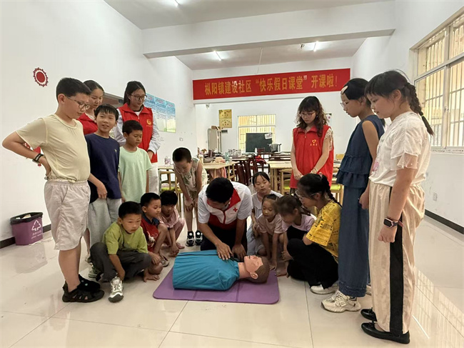 枞阳县红十字会走进建设社区暑托班,讲解应急救护知识