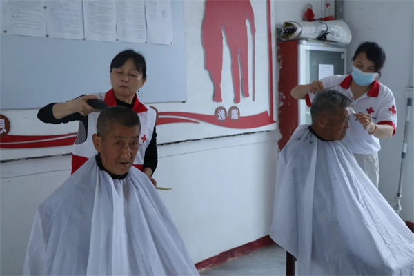 义务理发的区域同样热闹非凡。理发师志愿者们带着专业的理发工具,细心地为每一位老人修剪头发。修剪完头发的老人精神面貌焕然一新,脸上洋溢着满意的笑容,不停地对理发师志愿者表示感谢。