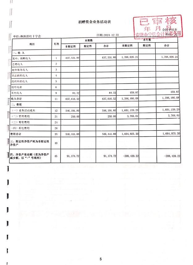 枞阳县红十字会2024年捐赠账户收支情况审计报告