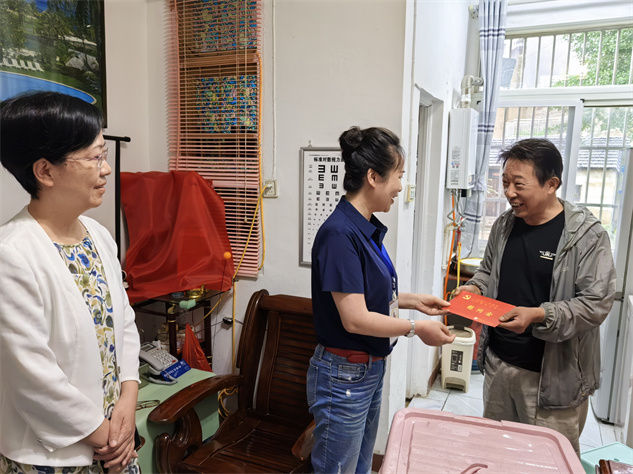 在中国共产党成立103周年到来之际,为进一步加强党内关怀、帮扶工作,增强党组织凝聚力,切实体现政府对困难党员的关心与爱护,7月2日,铜陵市红十字会一行来到枞阳县光明社区开展对困难党员的慰问活动,市红十字会专职副会长谷冬萍走进困难党员家中,与他们亲切交谈,并为他们送上慰问金及慰问箱,感谢他们对党的事业做出的贡献,叮嘱他们多注意身体。县政协副主席、县红十字会专职副会长刘明陪同。