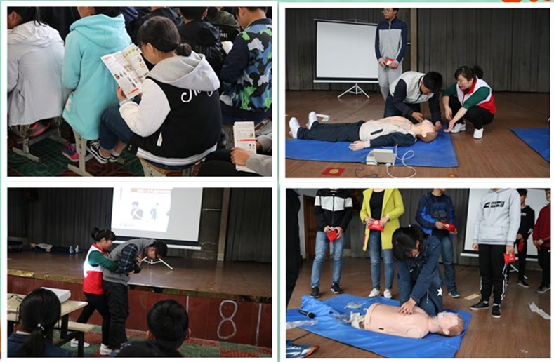 在培训现场,由县红十字会培训老师介绍了红十字运动的发展史和红十字精神,现代应急救护的新概念,心肺复苏术,海氏急救法,常见烫伤、出血、骨折等创伤的应急处理,火灾、地震等灾害现场的应急逃生等知识。通过理论宣讲和现场演示相结合的方法,现场和同学们进行了互动教学,通过亲自操作模拟人,进一步巩固了所学知识,掌握自救互救的基本技能,为今后更好地救助突发事件现场的伤者积累了宝贵经验。培训深入浅出,通俗易懂,收到了良好的效果。