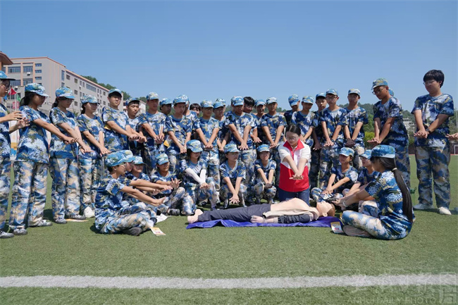近年来,枞阳县红十字会持续推进应急救护培训进校园工作,将红十字应急救护培训纳入新生军训课程,把急救知识作为高一新生安全教育的重要一课,推动应急救护知识和技能在校园中广泛普及,2020年就已实现高中阶段应急救护培训全覆盖,累计培训学生6万余人次,为广大师生的生命安全保驾护航,营造“人人学急救、急救为人人”的良好社会氛围。
