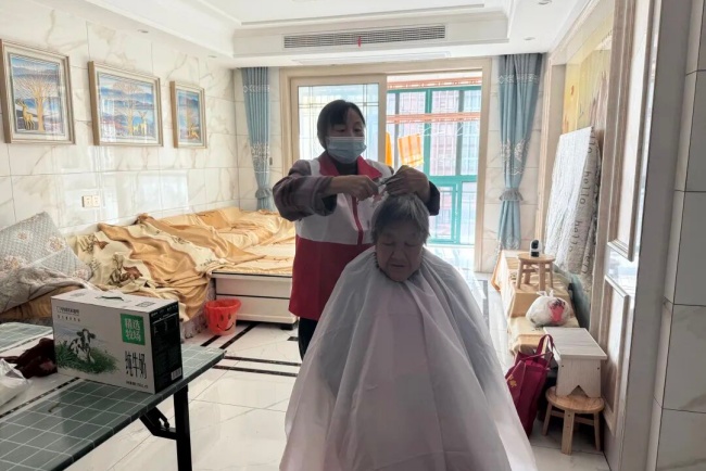 志愿者耐心梳理、精心修剪,轻轻擦去碎发,还不时询问其感受,修剪完毕,老人们拉着志愿者的手连连道谢:“太感谢了,专门跑一趟,让我干干净净过重阳!”