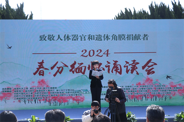 自2014年起,安徽省红十字会将每年的春分确定为安徽省遗体、器官、角膜组织捐献者缅怀纪念日。在轻松翠柏掩映之下的舞台上,一篇篇感人肺腑的诗歌、信文在遗体器官捐献者家属的口中深情朗读,表达了他们对逝去亲人深切的思念,尾篇《生命的礼赞》则诵读出对所有遗体器官捐献者的敬重与缅怀之情。