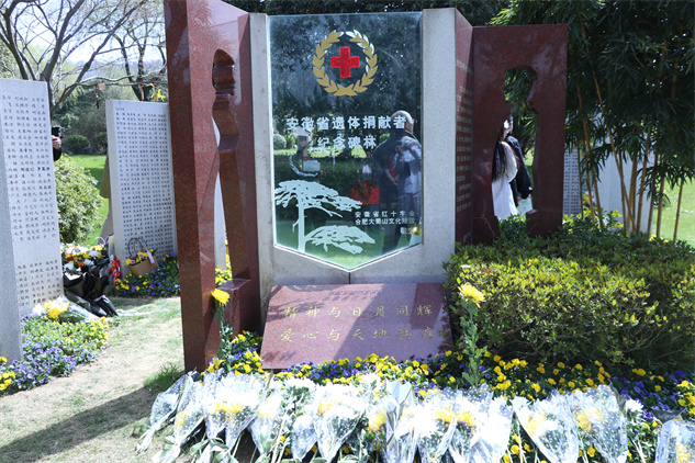 3月20日上午,一场缅怀致敬遗体、器官、角膜组织捐献者的诵读会在安徽省合肥市大蜀山文化陵园举行。枞阳县红十字会工作人员陪同捐献者家属参加活动。