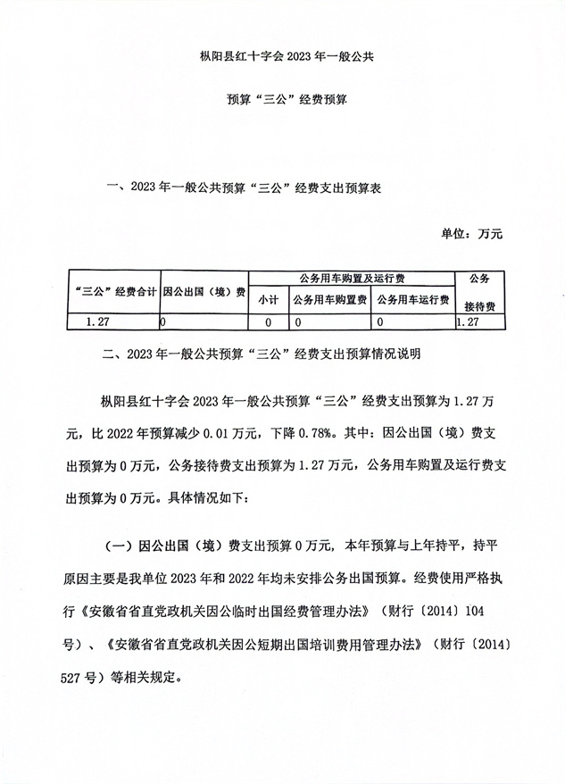 枞阳县红十字会2023年一般公共预算“三公”经费预算