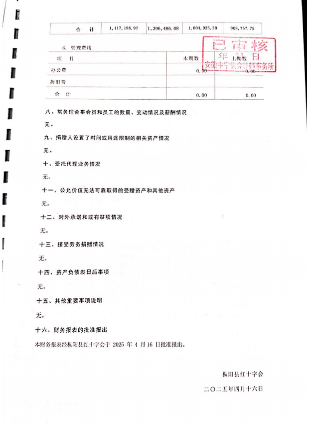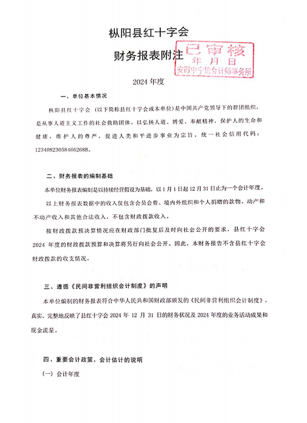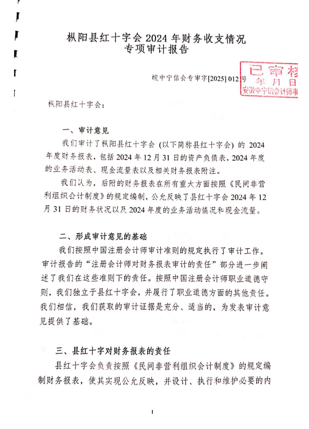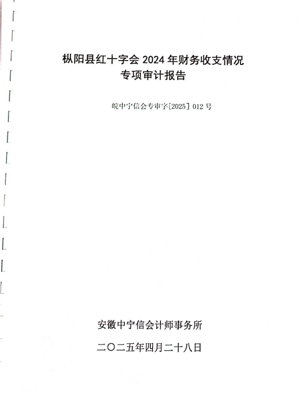 枞阳县红十字会2024年捐赠账户收支情况审计报告